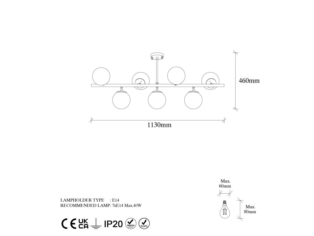 Typ žárovky: 6 x E14 Max. 40 W