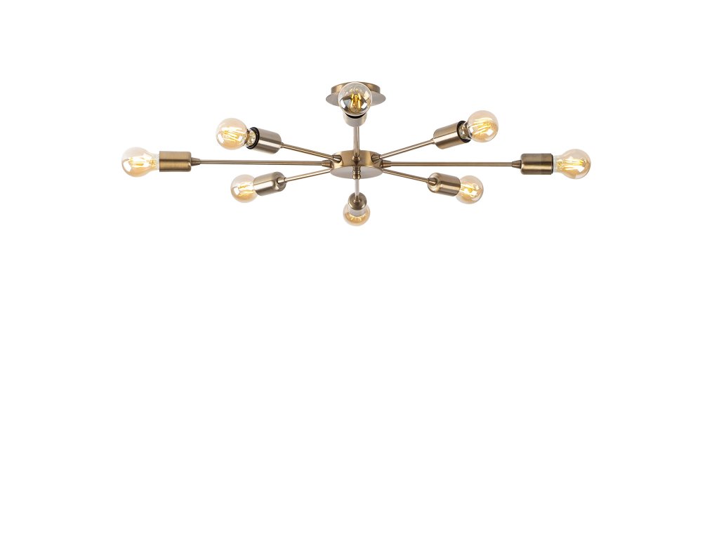 Lustr RAY nadchne všechny ty z Vás, kdož máte rádi hodně světla a s počtem osmi žárovek vykazuje zlatý lustr opravdu dobrou osvětlovací schopnost.