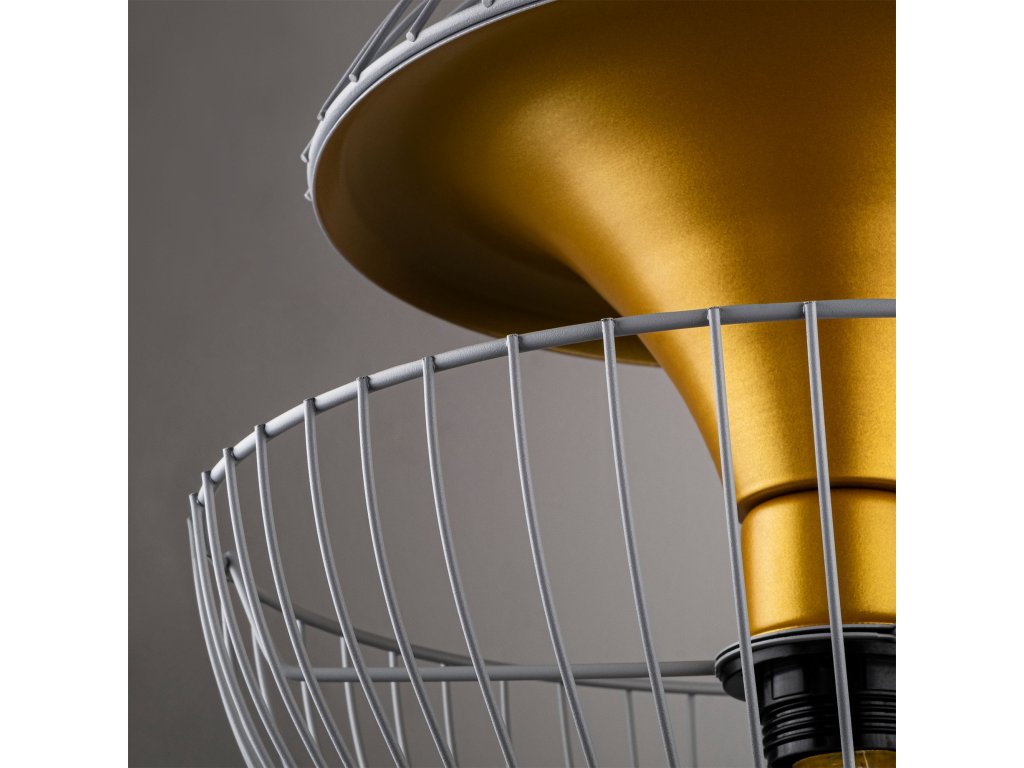 Šedý lustr TELMANDER je složený z drobné kruhové základny, výškově nastavitelného drátěného členitého stínítka.