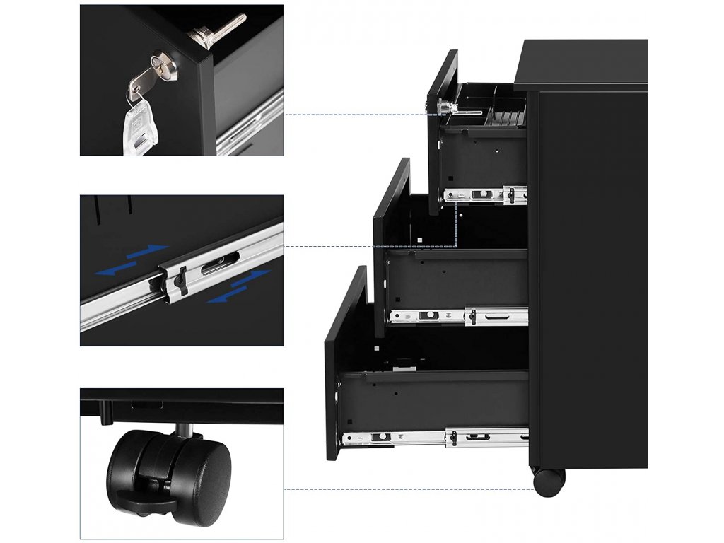 Mobilní kartotéka se třemi zásuvkami na kuličkových výsuvech, umožňuje přehledné uskladnění všech vašich dokumentů doma i v kanceláři.