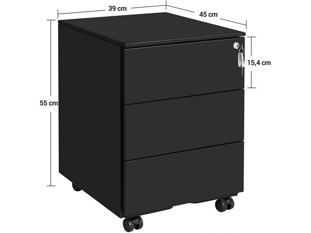 Mobilní kartotéka černá 3 zásuvky 39 x 55 x 45 cm