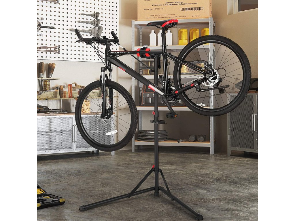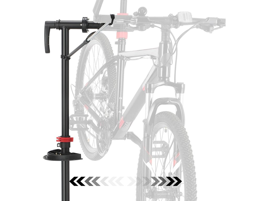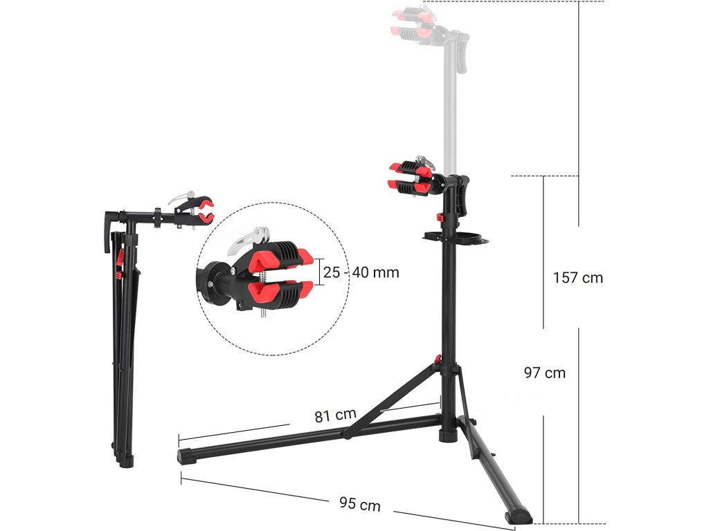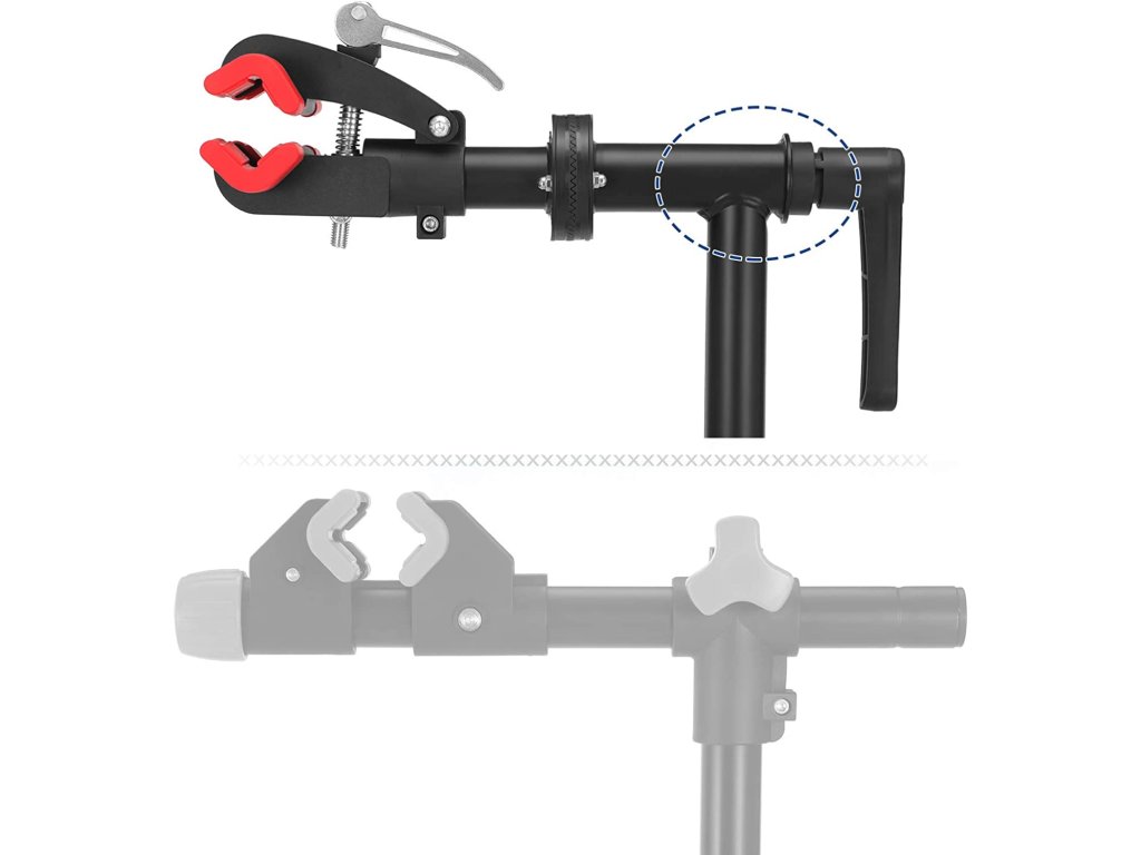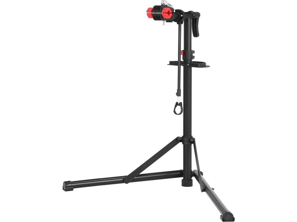 Montážní otočný stojan slouží současně i jako nosič jízdních kol s rychloupínáky.
