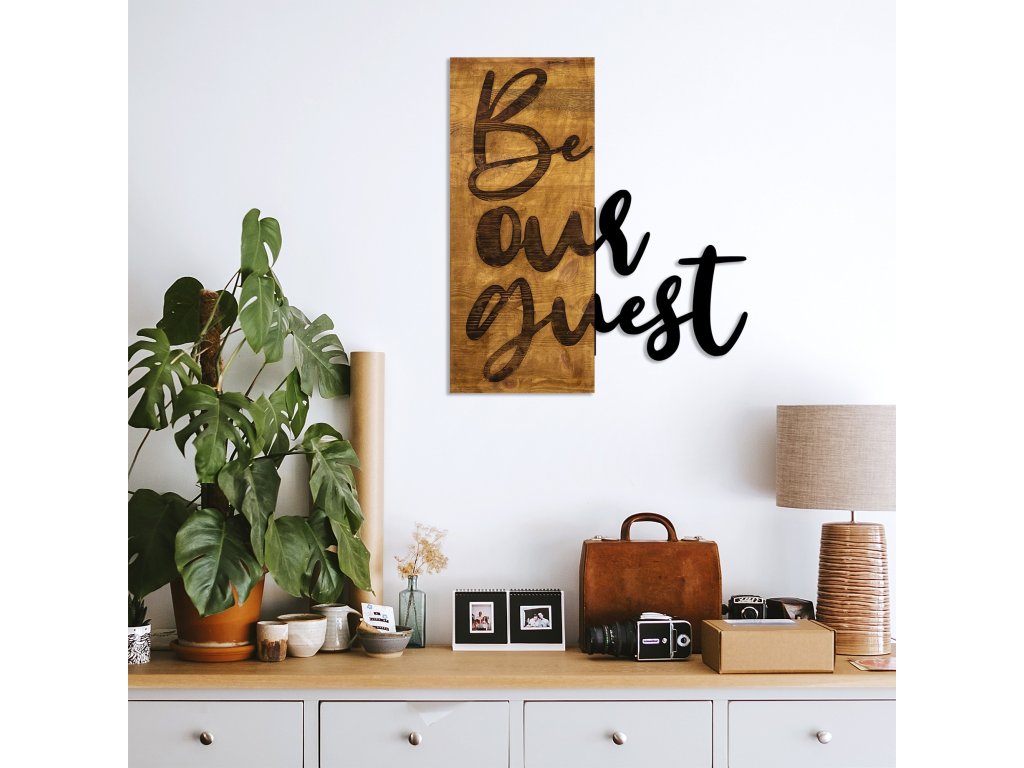 Nástěnná dekorace dřevo BE OUR GUEST 50 x 58 cm