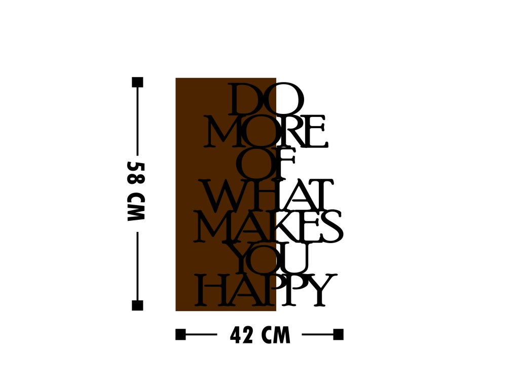 Unikátní dřevěná nástěnná dekorace s částečně kovovým nápisem "do more of what makes you happy", který nám říká, že máme dělat více toho, co nás činí šťastnými.
