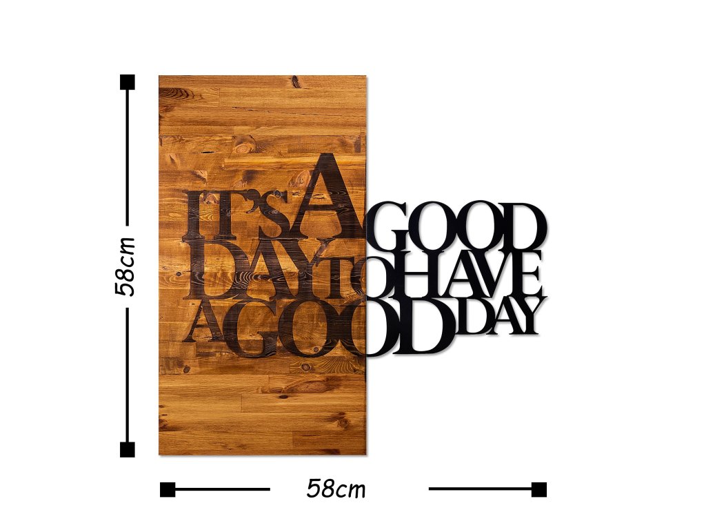 Unikátní dřevěná nástěnná dekorace s částečně kovovým nápisem " it´s a good day to have a good day ", který nám říká, že je dobrý den na to mít dobrý den!