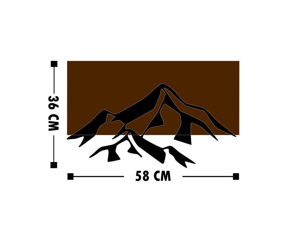 Dřevěná deska s černou vypálenou kresbou je nastavená kovovými pláty a ztvárňuje horský masiv, přičemž dokonale kombinuje přírodní a industriální styl a jistě udělá radost nejen milovníkům hor.
