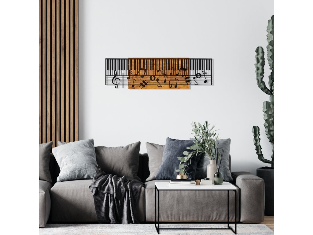 Klávesy a noty jsou námětem této nástěnné dřevo-kovové dekorace a jistě bude fungovat jako skvělý doplněk nejen pro milovníky hudby.
