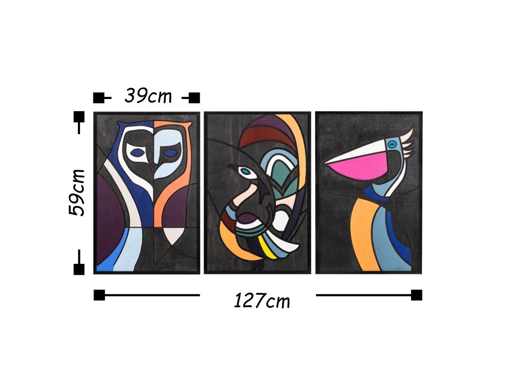 Nástěnná dekorace dřevo PTÁCI 39 x 59 cm (3 kusy)