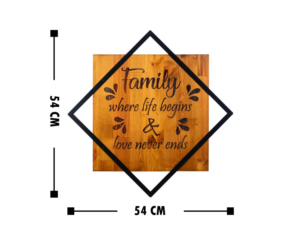 Nástěnná dekorace dřevo RODINNÉ MOTTO 54 x 54 cm