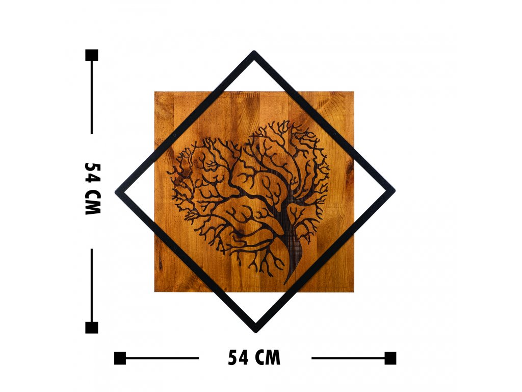 Nástěnná dekorace dřevo STROM V SRDCI 54 x 54 cm
