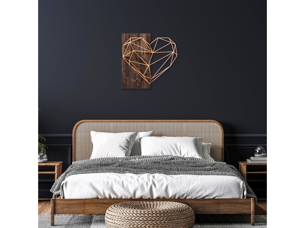 Nástěnná dekorace kombinující tmavé dřevo a kov zlaté barvy dodá každému interiéru nádech elegance a stylu.
