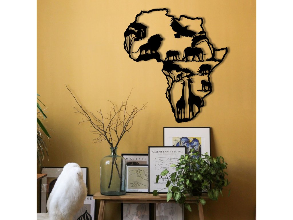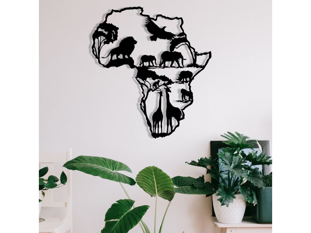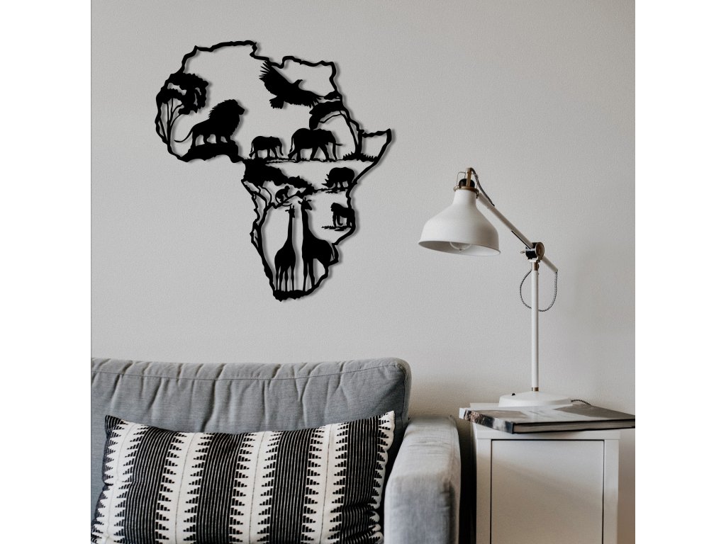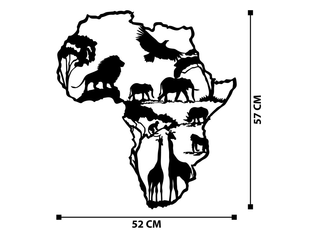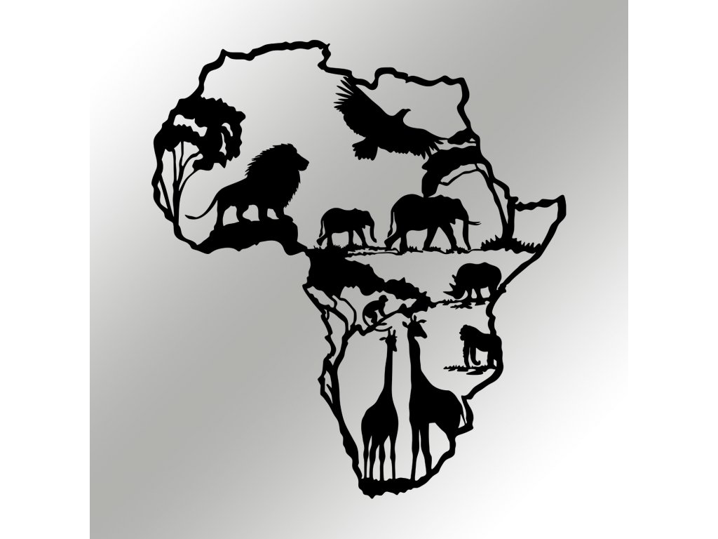 Africký kontinent s nejznámějšími jeho zvířecími zástupci je skvěle zobrazený pomocí kovové nástěnné dekorace, která se bude skvěle vyjímat v jakékoliv místnosti vašeho domu či bytu.