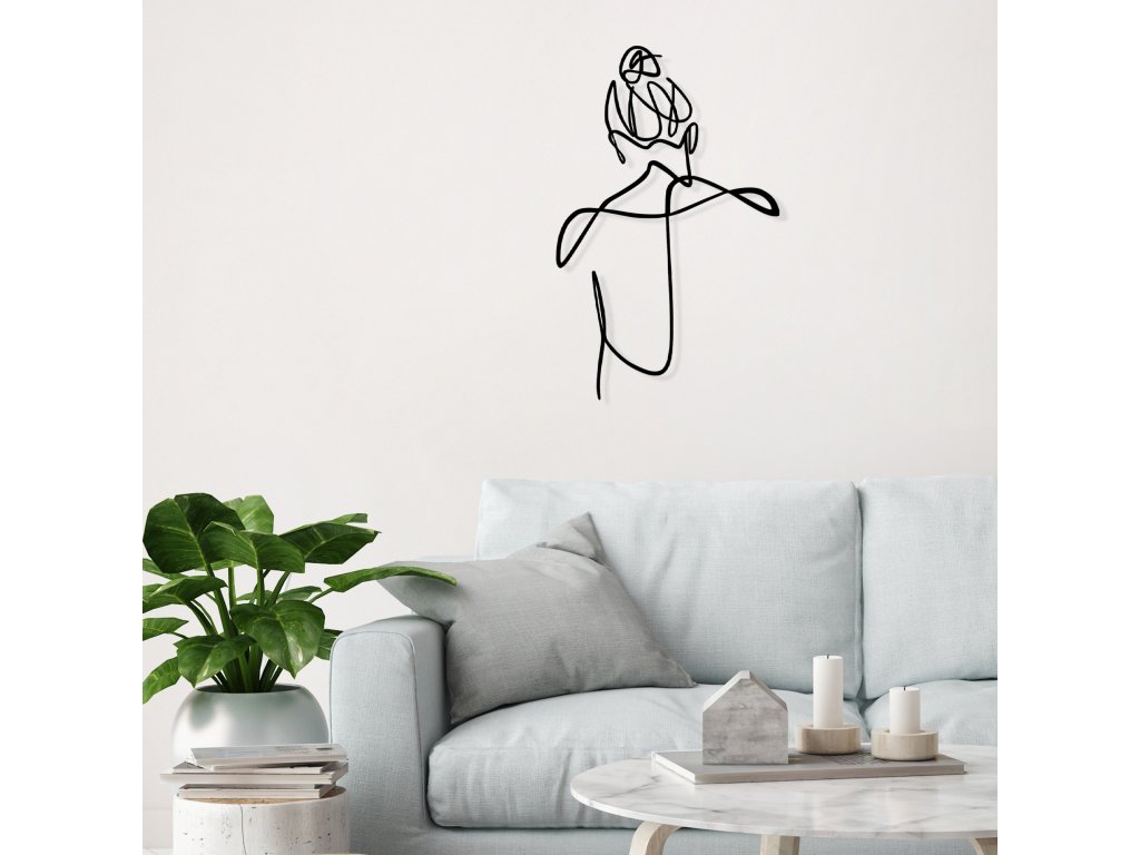 Kovová nástěnná dekorace vypadá, jako kdyby byla kreslená jedním tahem a tím je i zajímavá.