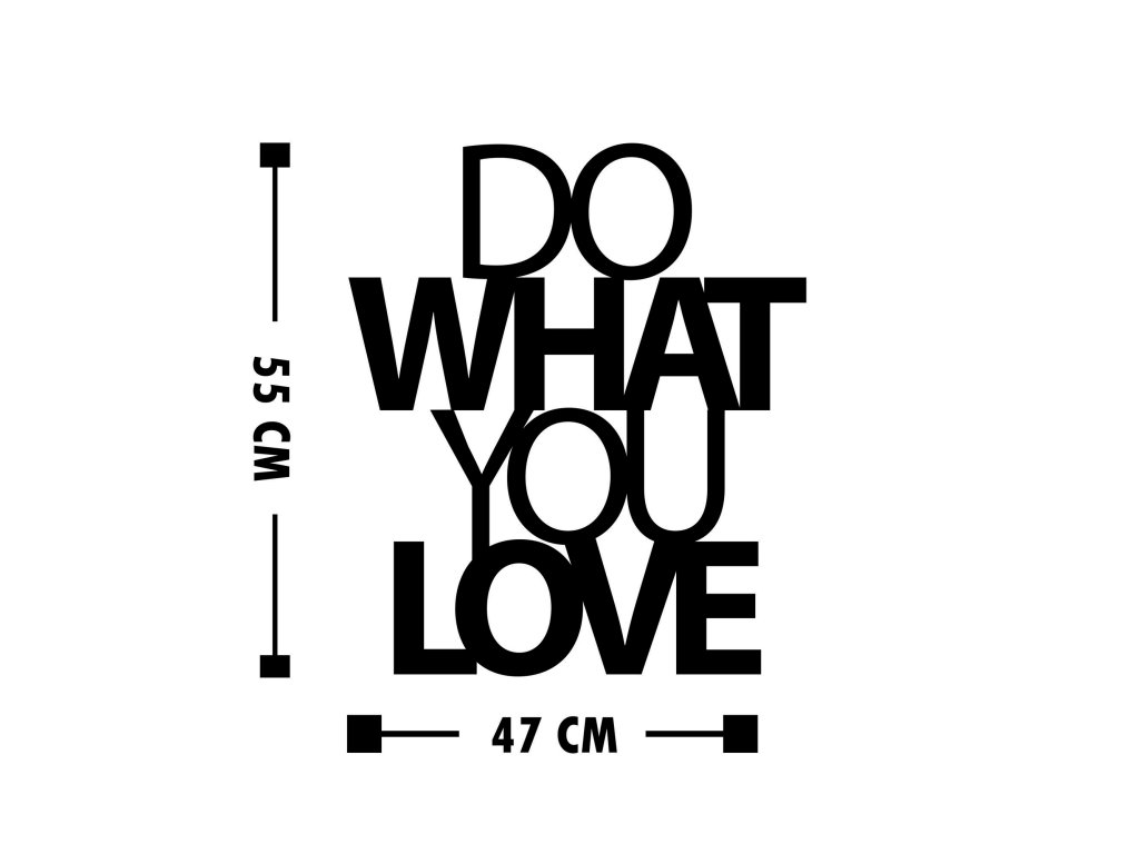 Dekorativně ztvárněné anglické motto: "DO WHAT YOU LOVE" ve volném překladu znamená, abychom dělali to, co milujeme.