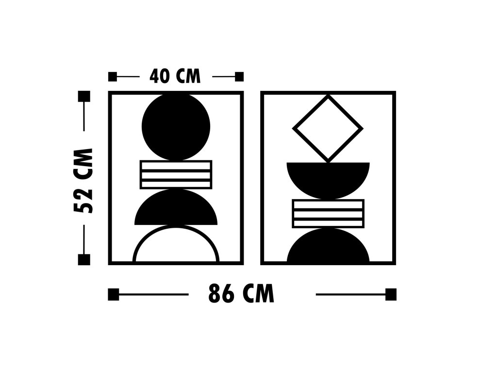 Dvě sestavy geometrických útvarů rozdělených do dvou obdélníkových rámů jsou praktickou dekorací i do vašeho interiéru.