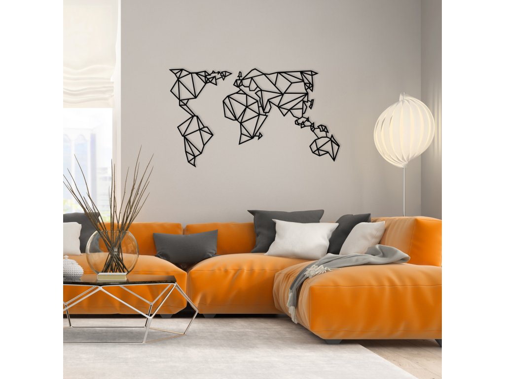 Ze široké škály různě velkých černých kovových trojúhelníčků složené obrysy většiny KONTINENTŮ naší planety je tématem této nástěnné dekorace.