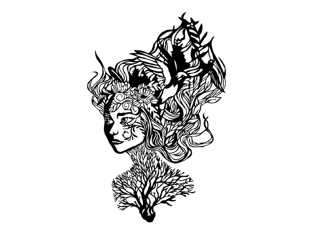 Z vlasů KOUZELNÉ FLÓRY vylétají dva ptáčci, kteří hledali v náruči flóry své útočiště.