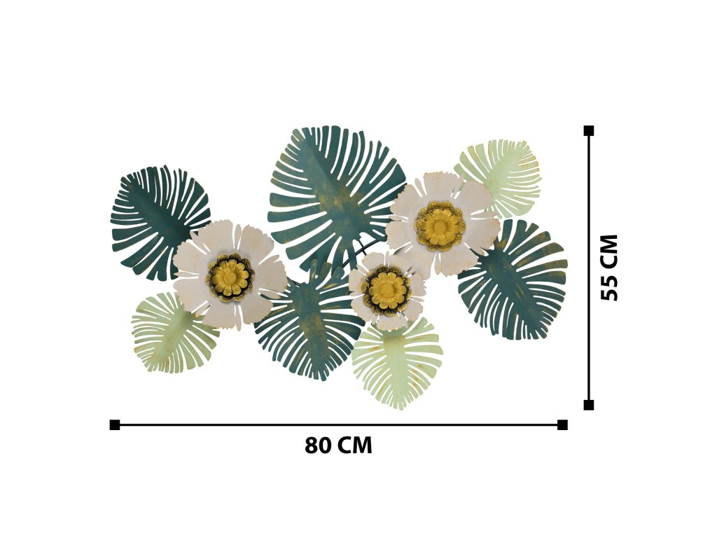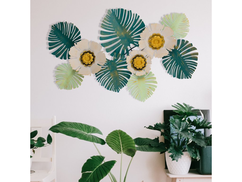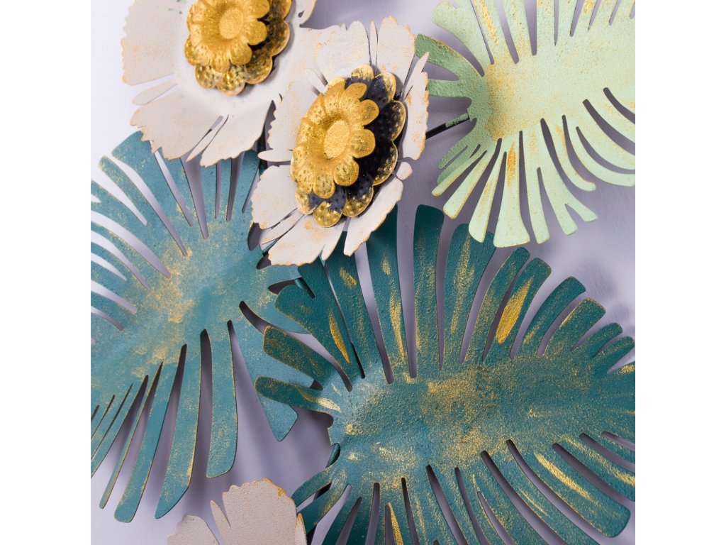 Nástěnná dekorace kov KVĚTY S LISTY 80 x 55 cm