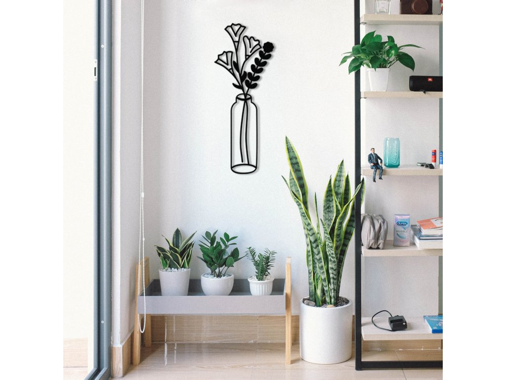 KVĚTY VE VÁZE je kovová nástěnná dekorace vyrobená v industriálním stylu a může podpořit každý obdobně laděný interiér.