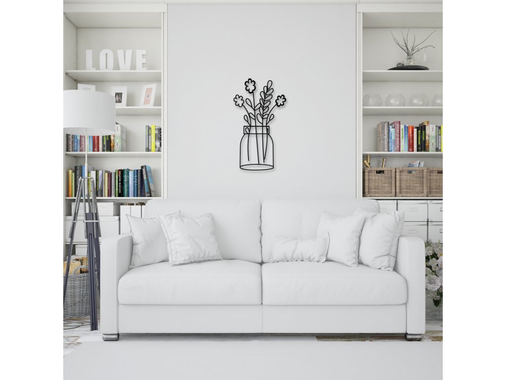 KVĚTY VE VÁZE je kovová nástěnná dekorace vyrobená v industriálním stylu a může podpořit každý obdobně laděný interiér.