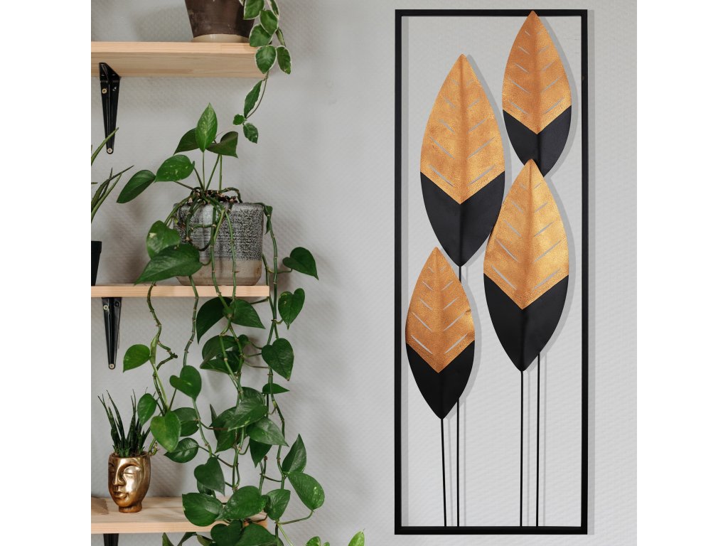 Nástěnná dekorace kov LISTY černé zlaté 32 x 5 x 90 cm