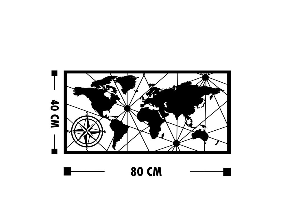 Kovová nástěnná dekorace s motivem mapy světa s prokřižovanými oceány a moři udělá radost jistě mnohým z vás.