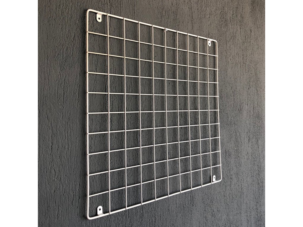 Nástěnná dekorace je tvořena bílou kovovou mřížkou, která díky kolíčkům umožňuje zavěšení fotografií, vzkazů, důležitých maličkostí na viditelné místo.