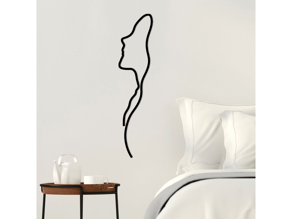 Nástěnná kovová dekorace znázorňující tvář vnese do vašeho obytného prostoru prvek industriálního stylu však v jemném ženském tónu.