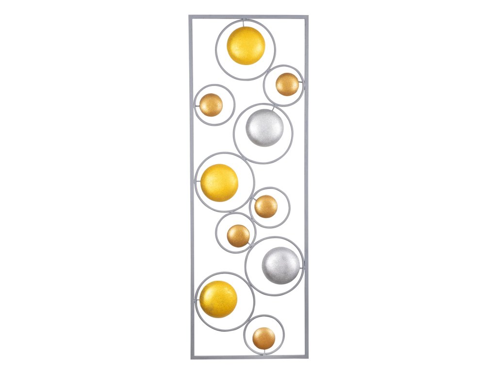 Výhodou této kovové nástěnné dekorace je její abstraktní nádech a vy si můžete představit nejen planety, ale třeba míče, či bubliny.