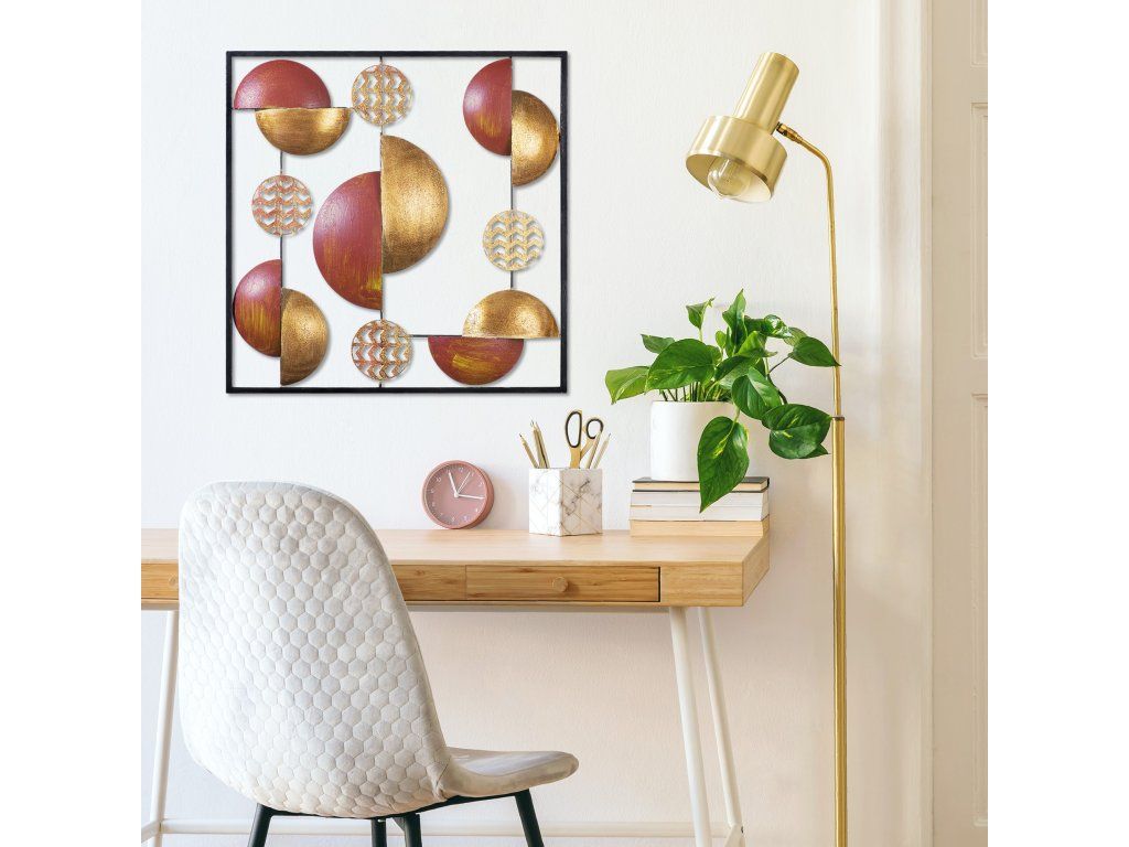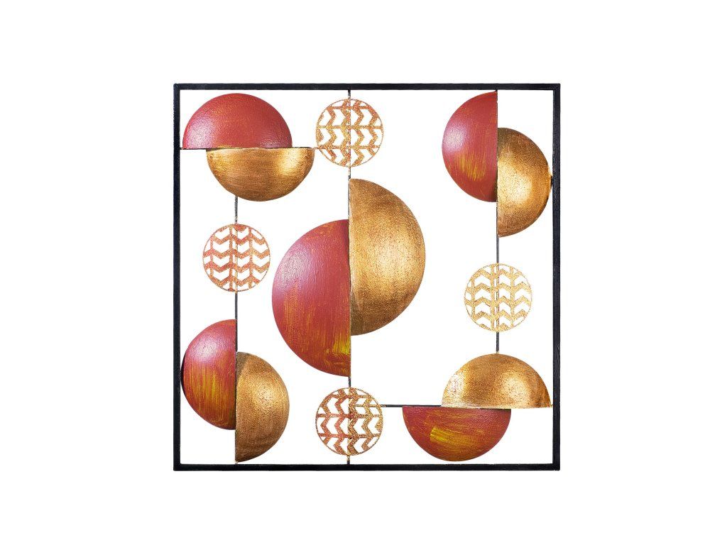 Nástěnná dekorace kov PŮLKRUHY zlatá červená 55 x 55 cm