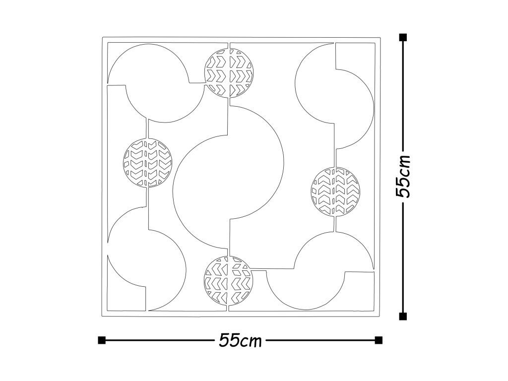 Je vyrobená z 1,5 mm silných kovových plátů s celkovými rozměry: 55 x 55 cm.