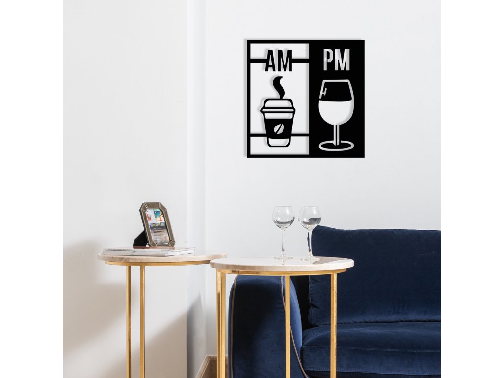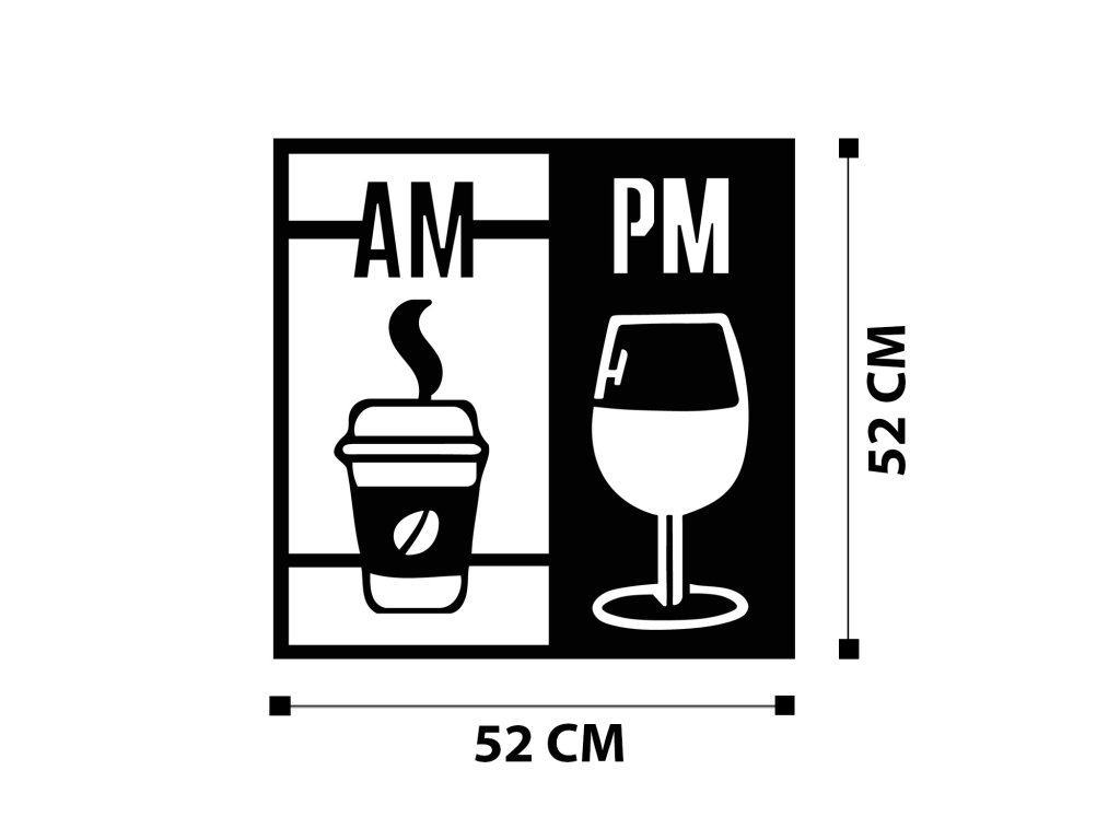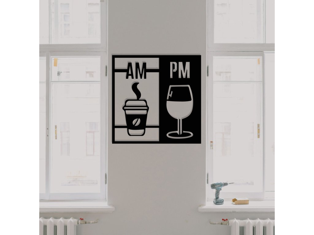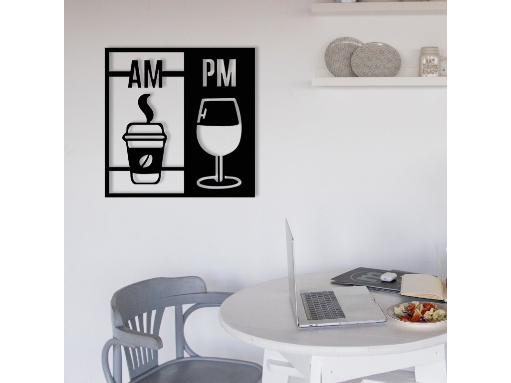 Nástěnná dekorace kov RÁNO KÁVA VEČER VÍNO 52 x 52 cm