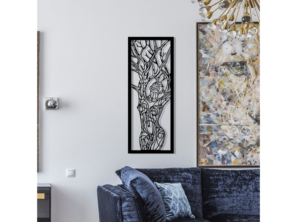 Černá kovová nástěnná dekorace s motivem ženského těla místo kmenu bude skvělým doplňkem například do ložnice.