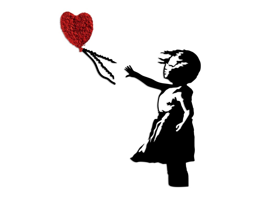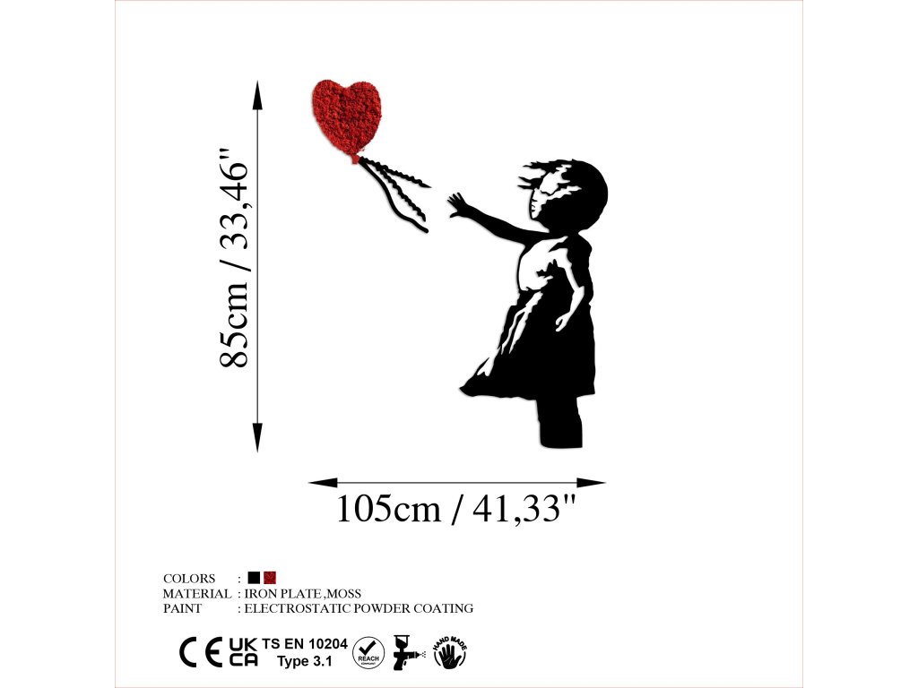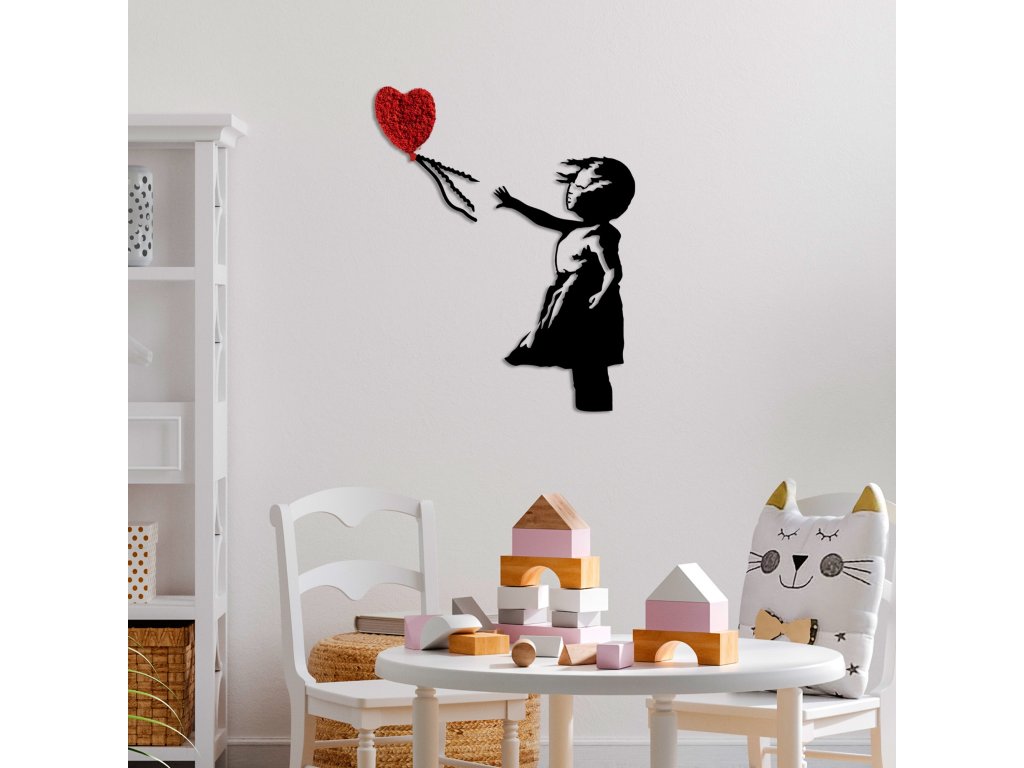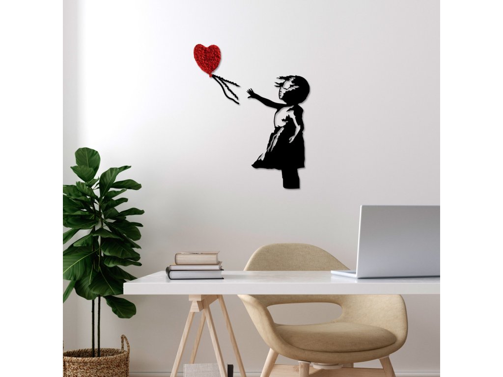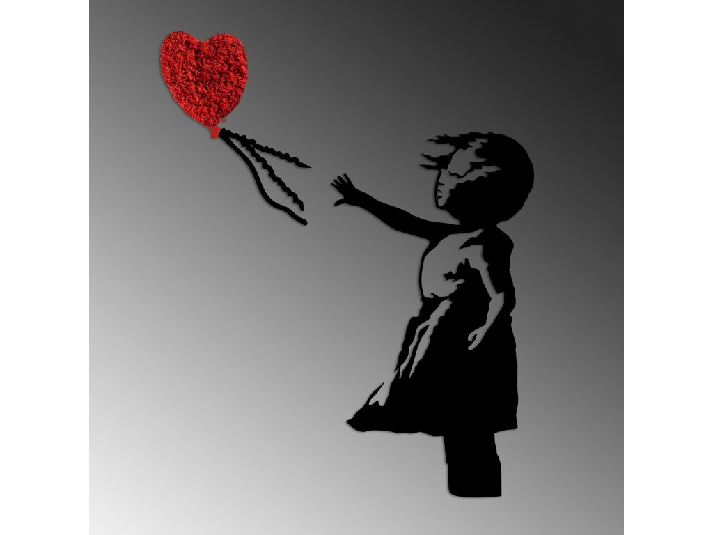 Nástěnná dekorace kovová BANKSY dívka s Balonkem, černá a červená