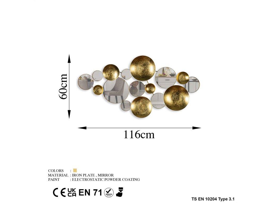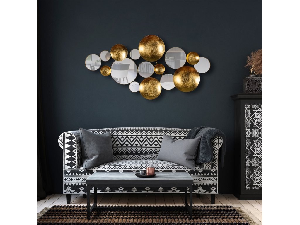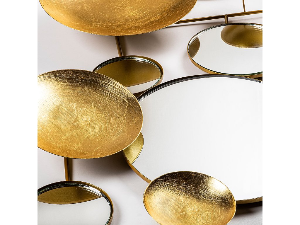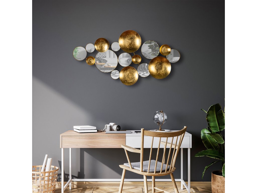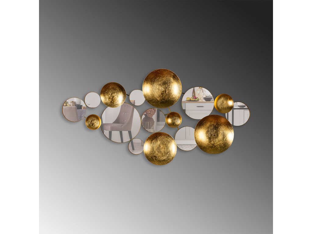 Nástěnná dekorace kovová INFINITY se zrcadlem, zlatá