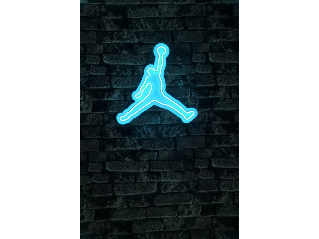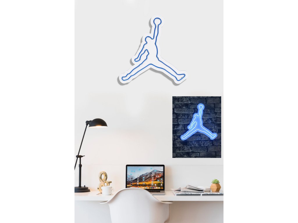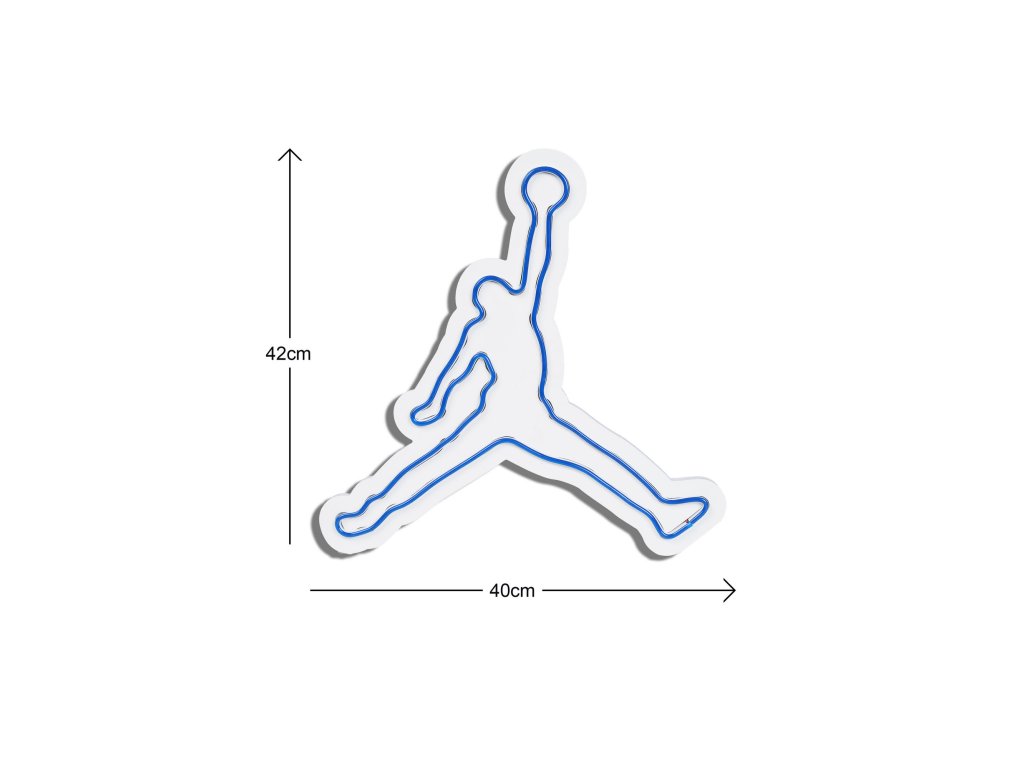 BASKETBALL je nástěnná světelná dekorace zobrazující hráče v pohybu, který se možná připravuje vhodit míč do koše.