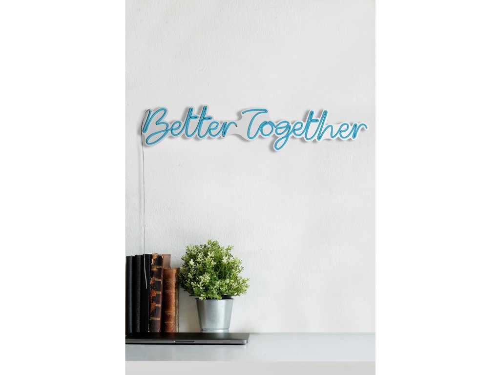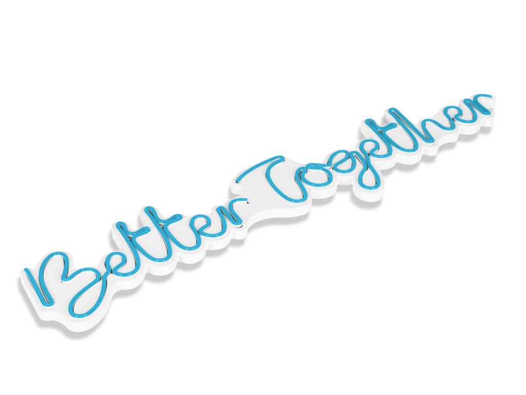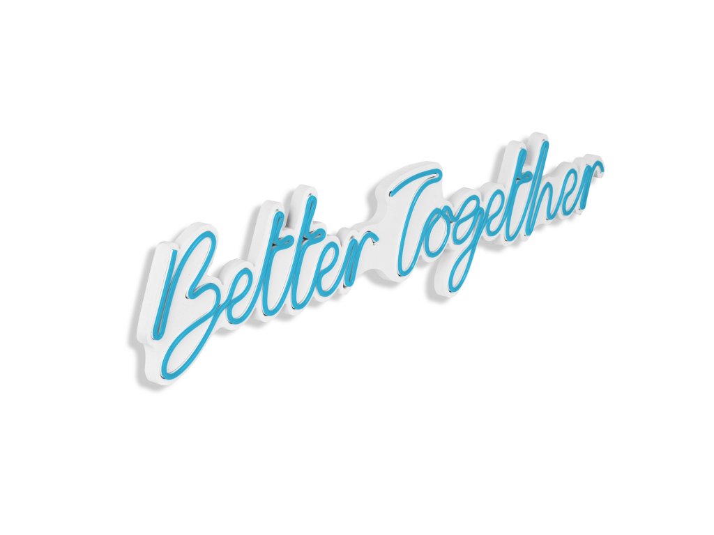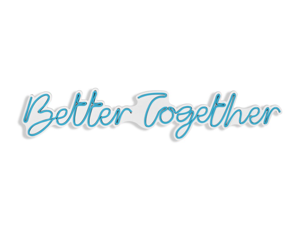 BETTER TOGETHER s LED světle modrým osvětlením je nástěnná dekorace zobrazující anglický nápis: "Lépe spolupracovat"
