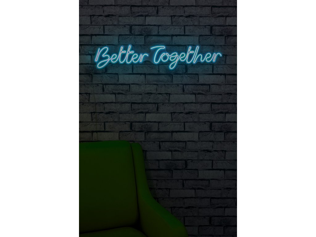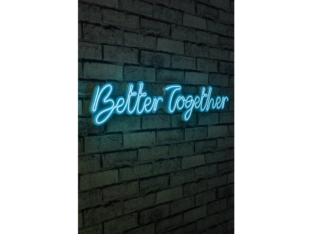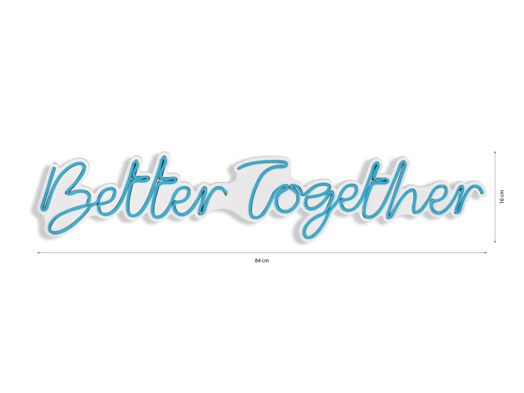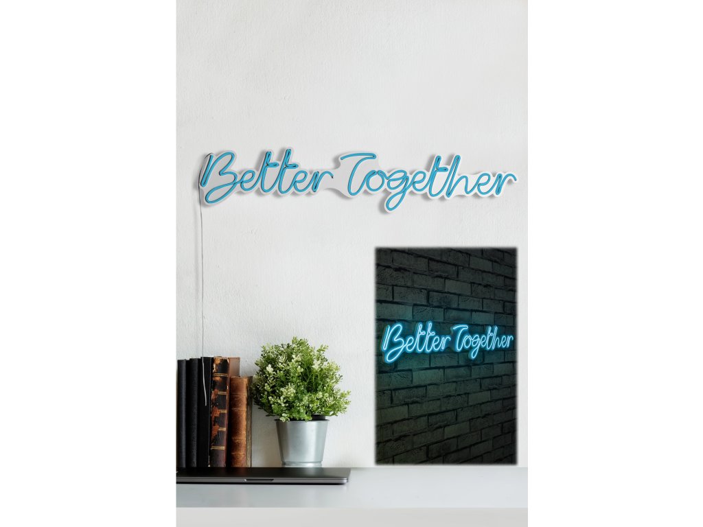 BETTER TOGETHER s LED světle modrým osvětlením je nástěnná dekorace zobrazující anglický nápis: "Lépe spolupracovat"