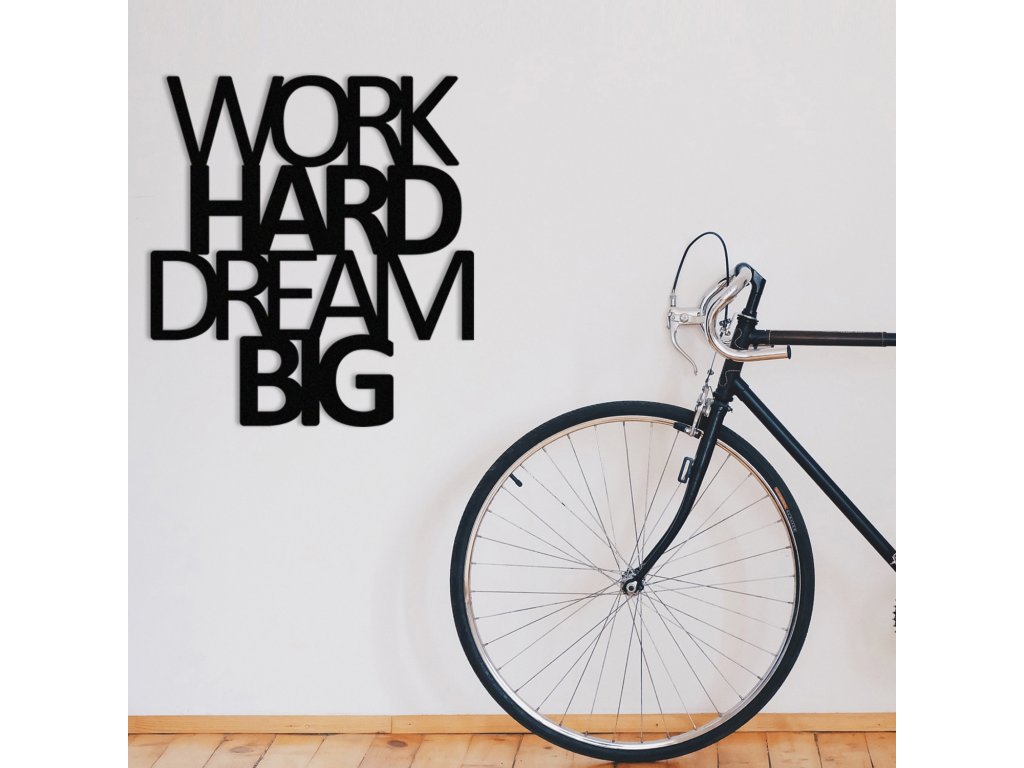 Nástěnná kovová dekorace - nápis WORK HARD DREAM BIG.