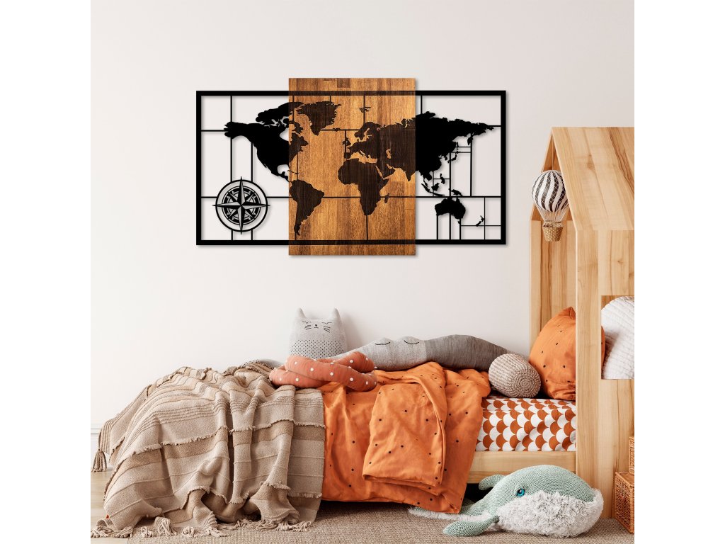 Nástěnná dřevěná dekorace WORLD MAP černá
