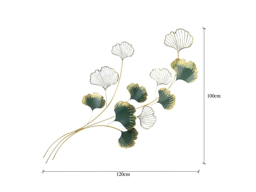 Nástěnná kovová dekorace ZELENO ZLATÉ LISTY 120 cm