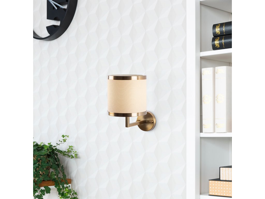 Mosazná nástěnná lampa WAY je vyrobená z drobné základny, ze které vede malé rameno nesoucí elegantní stínítko.