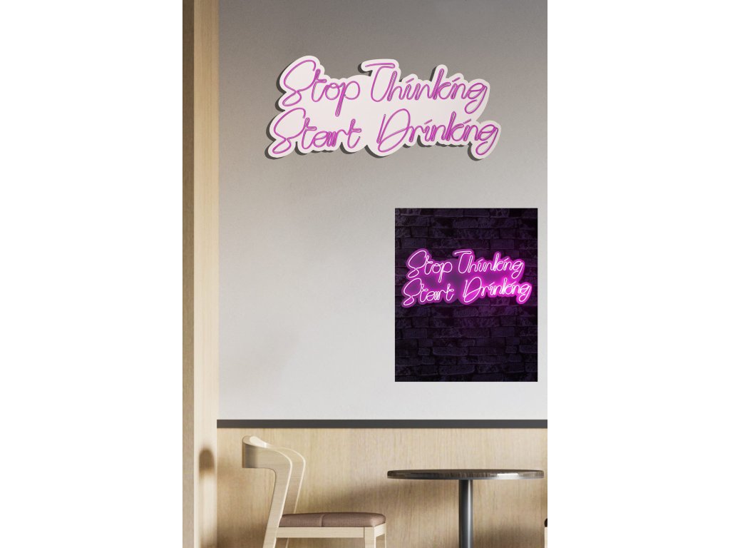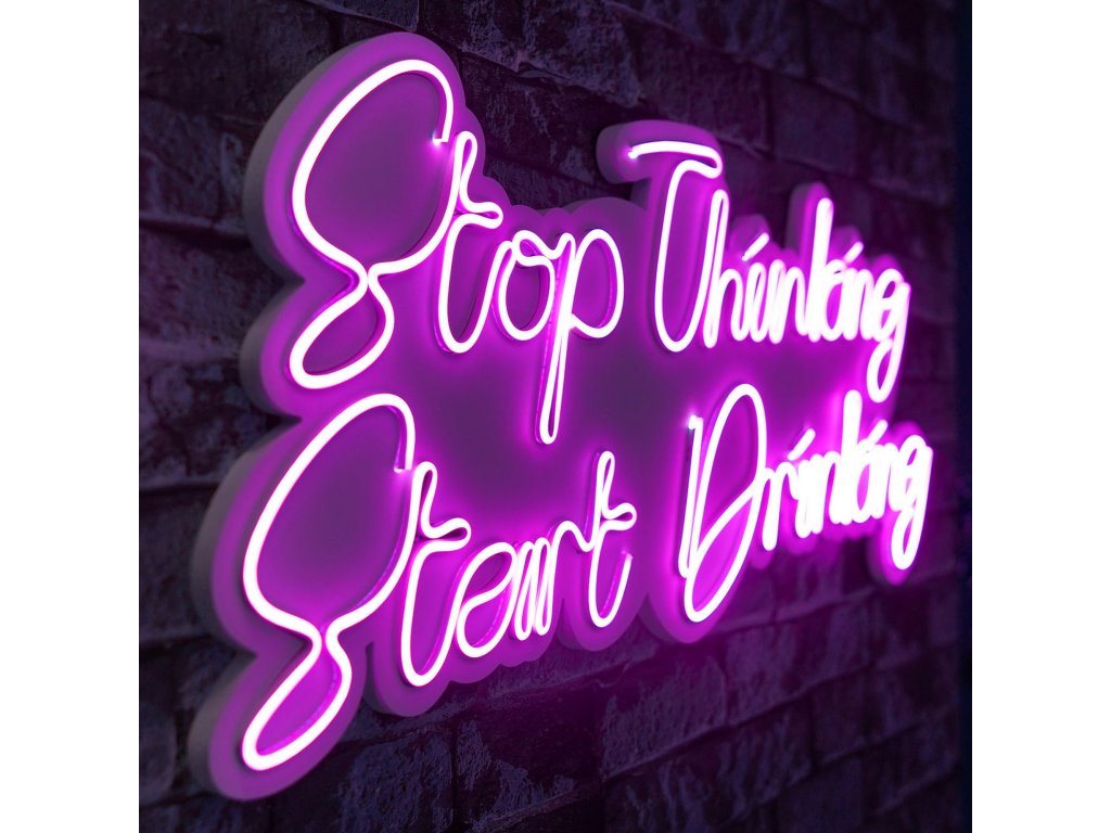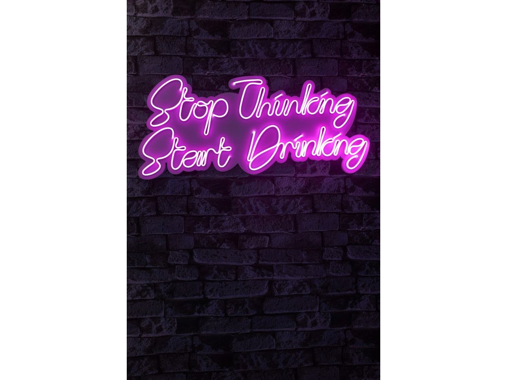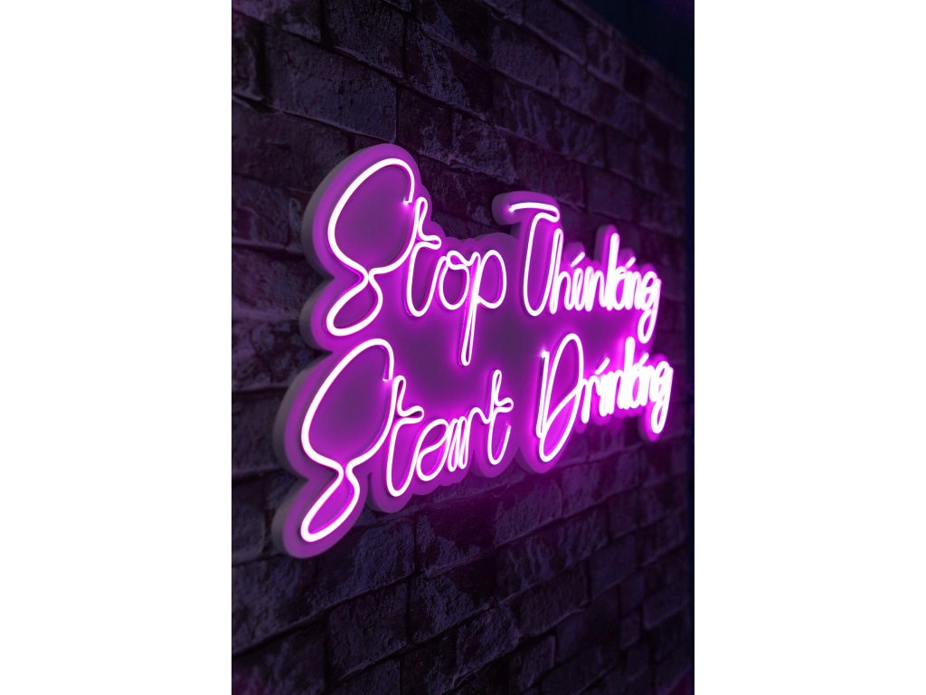 Nástěnná LED dekorace STOP THINKING START DRINKING růžový nápis