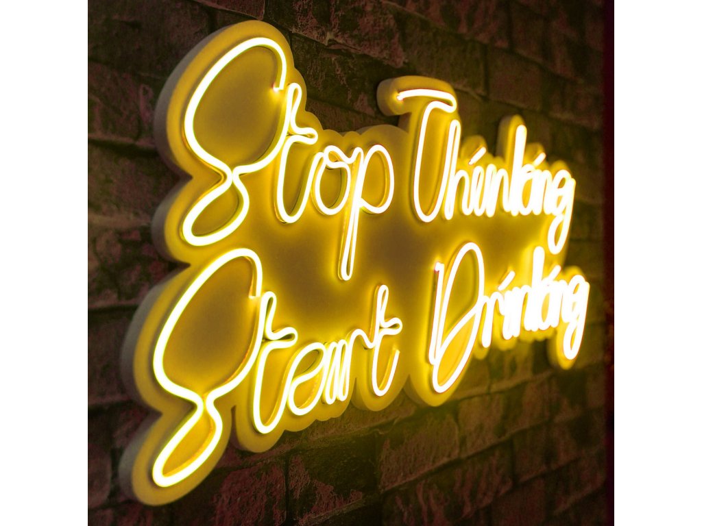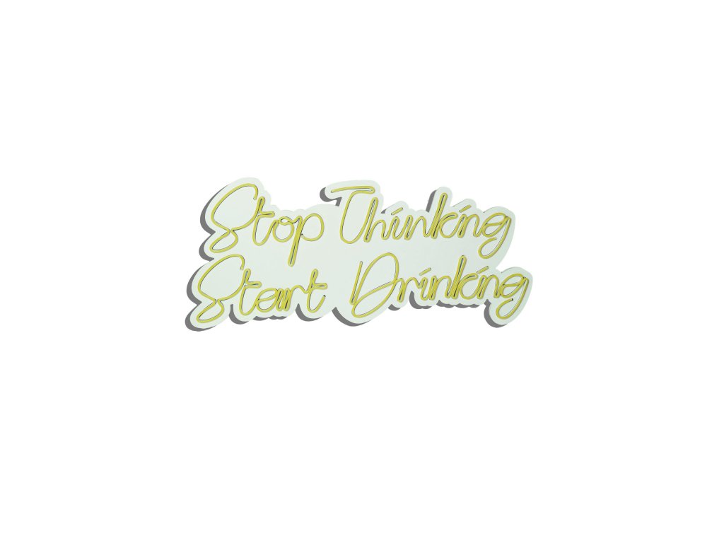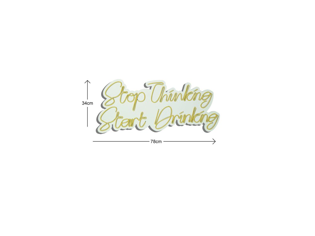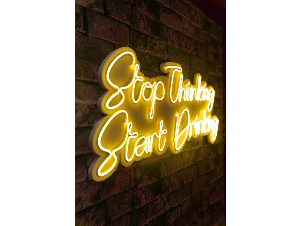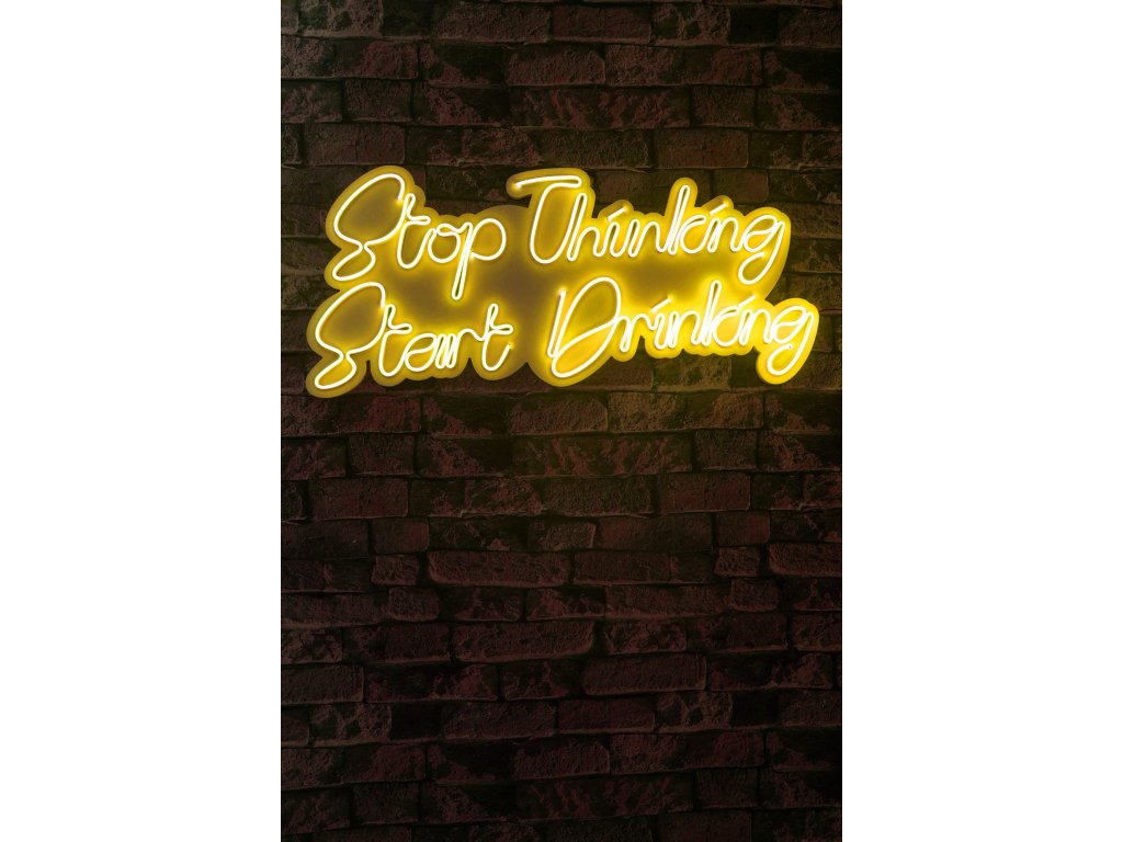 Nástěnná LED dekorace STOP THINKING START DRINKING žlutý nápis
