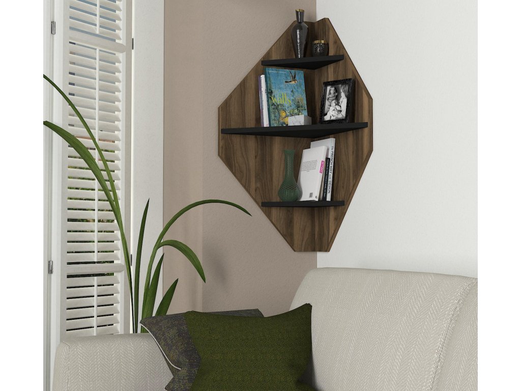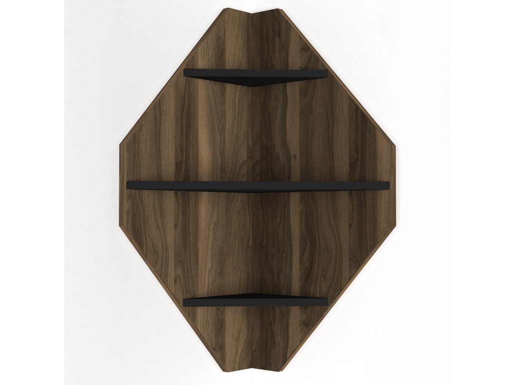 Nástěnná police BOSCO má tělo laděné do dekoru ořech, které je doplněno o černé police.