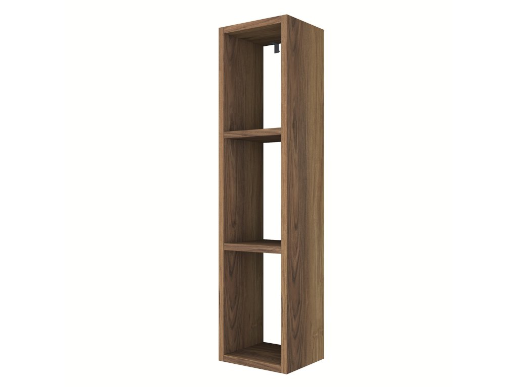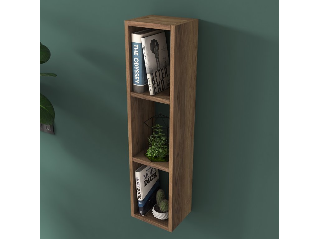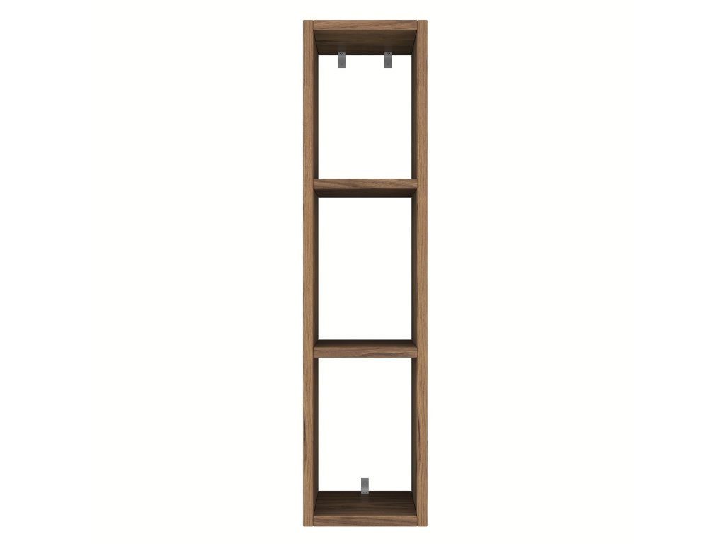 E3 je obdélníková nástěnná police, jenž je složená ze tří v dekoru ořech vyrobených a do jednoho kusu spojených otevřených regálů.