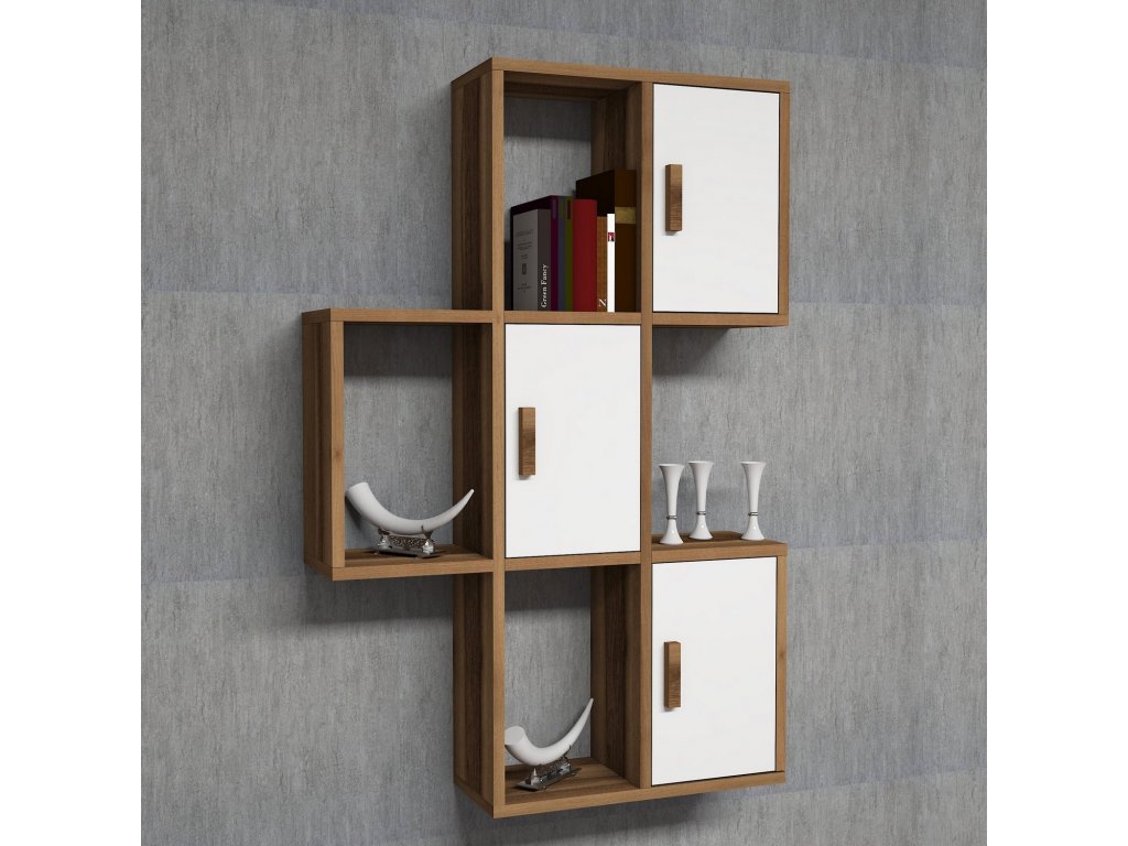 Nástěnná police FLORA ořech bílá