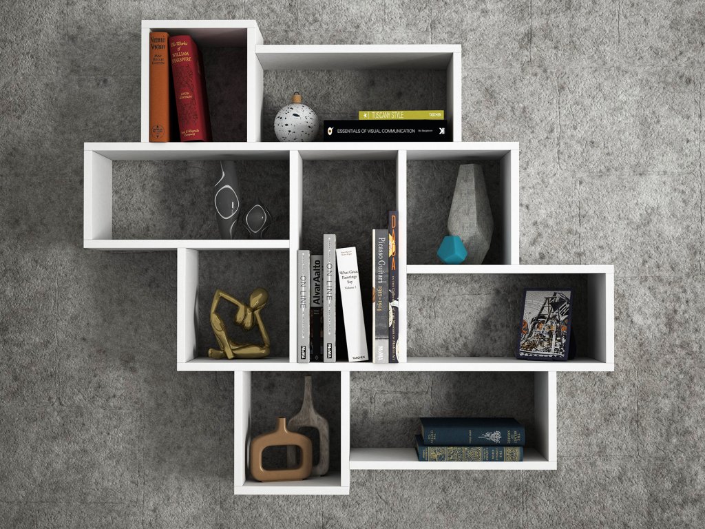 Nástěnná police PAROLA vhodná k vystavení knih ve studentském pokoji, fotografií a suvenýrů z dovolené v obývacím pokoji.