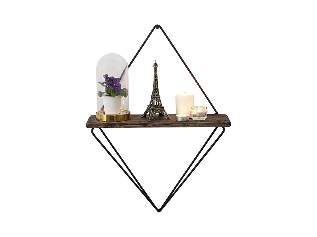 Nástěnná police PONIA černá tmavý ořech