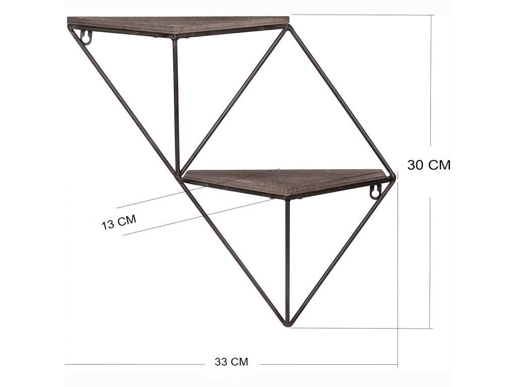 Nástěnná police tvořená kovovou konstrukcí se dvěma trojúhelníkovými policemi může dekorativně obohatit jakoukoliv místnost ve Vašem bytě.
